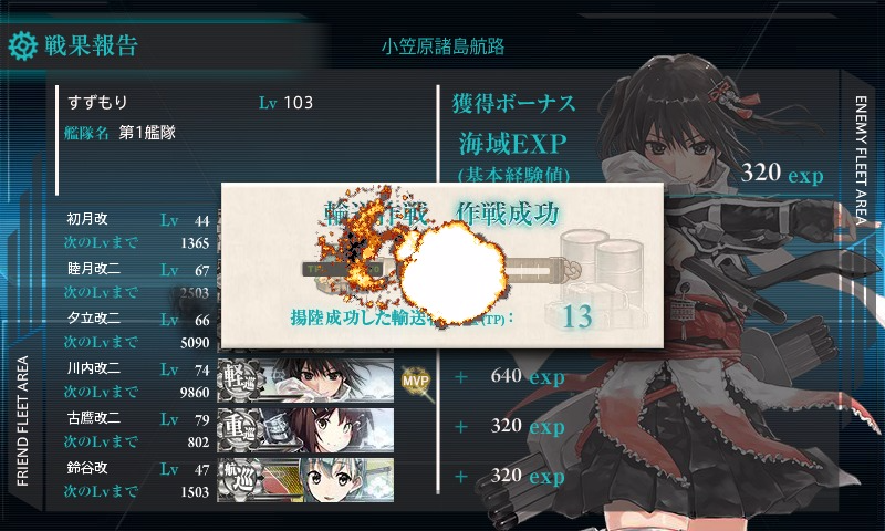 乙で攻略。史実艦というか神風型が育ってなかったので史実艦ルート採用できず…。